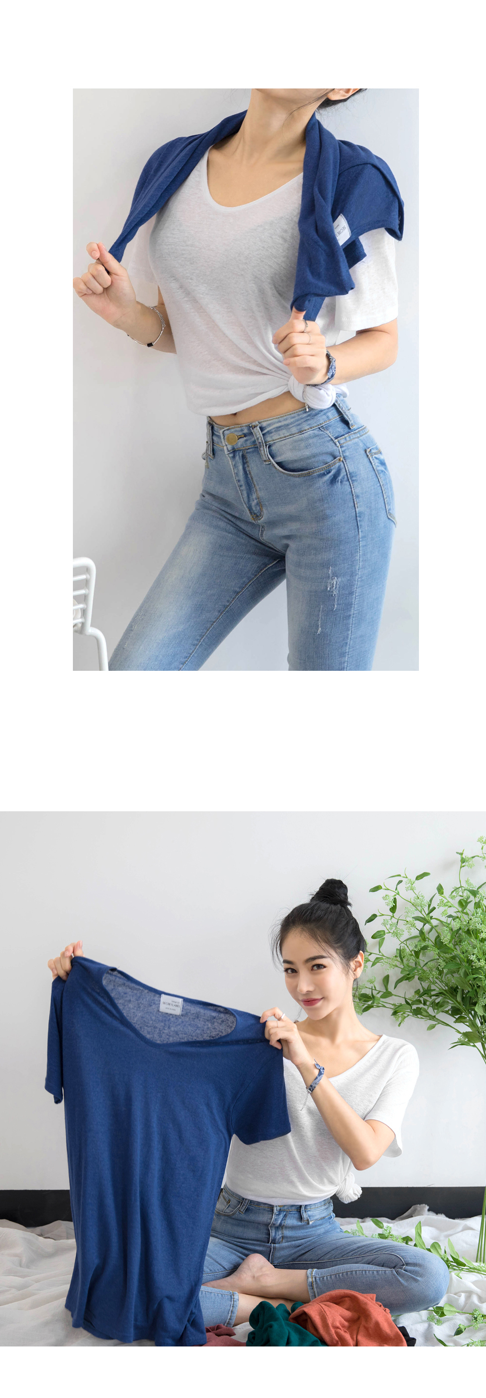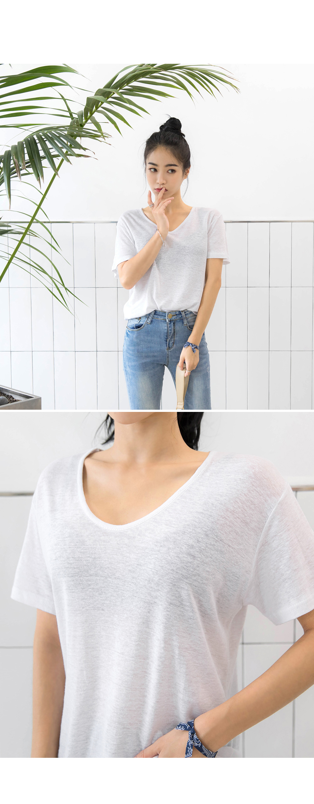 적당한 길이감으로 데일리하게 착용하기 좋은 린넨 티셔츠에요!