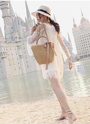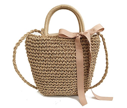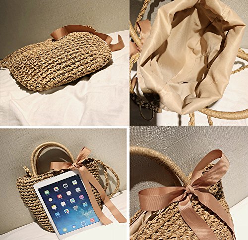 Women Straw Summer Tote Handbag Beach Shoulder Bag Cotton Lining Handbag for Girls