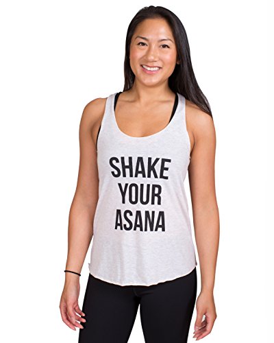 -. Binding : Apparel -. Brand : Inner Fire -. Color : Black -. Department : womens -. Feature : Laughing Yogi Collection tank top is fun to wear to the studio or day-to-day to show your yoga P.R.Ide and sense of humor, and help bring playfulness back to yoga / American Apparel racerback tank made in USA is a tri-blend of polyester, cotton and rayon / Super soft, comfortable racer back style is versatile and flatters every body type / Hand-screen P.R.Inted with love in Canada using eco-friendly water-based ink / Style runs small: Chest width (S: 13.5" - M: 14.5" - L: 16); Center front body length (S: 18" - M: 18.5"; L: 19.25") -. ProductGroup : Apparel -. ProductTypeName : SHIRT -. Title : Shake Your Asana Tank Top