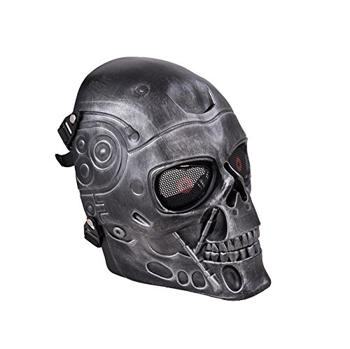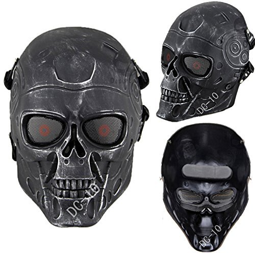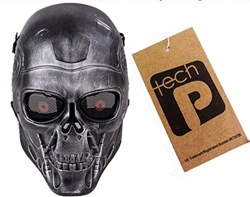 -. Binding : Sports -. Brand : TECH-P -. Color : Silver and black -. EAN : 0624365991690 -. Feature : MOVIE PROPS QUALITY You won't find a better made or more detailed cosplay mask on Amazon. / ENGINEERED FIBER CONSTRUCTION Design makes the Airsoft mask much more durable than basic plastic. / AIM TO PERFECTION Mesh eye protection doesn't limit line of sight when you wear the tactical mask. / COOL & LIGHTWEIGHT Our Outdoor CS war game mask won't hold you back from the competition. / ODOR FREE AND NONTOXIC Our protective mask gear is a pleasure to wear and completely safe. -. Label : TECH-P -. Manufacturer : TECH-P -. MPN : DC-10 -. PartNumber : DC-10 -. ProductGroup : Sports -. ProductTypeName : SPORTING_GOODS -. Publisher : TECH-P -. Studio : TECH-P -. Title : Tech-p Terminator Skeleton Mask - Protective Mask Gear for Use As Tactical Mask & Airsoft and Outdoor Cs War Game Mask - Scary Ghost Mask for Halloween - Silver and Black Cosplay Mask -. UPC : 624365991690