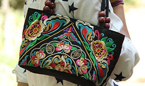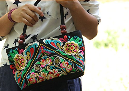 - COLORFUL FLOWERS PATTERNS: The surface of the bag with embroidered colorful flowers,It looks like real flowers and made of different lines, it is amazing, Inside with a zippered pocket ,Convenient to carry the wallet, phone ,key and so on