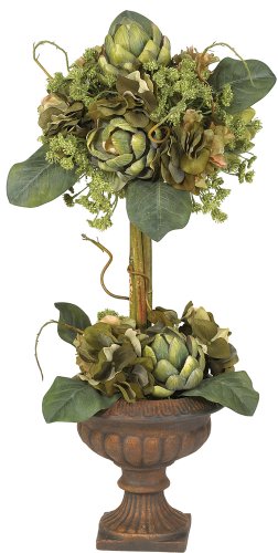 Nearly Natural 4633 Artichoke Topiary Silk Flower Arrangement, Green