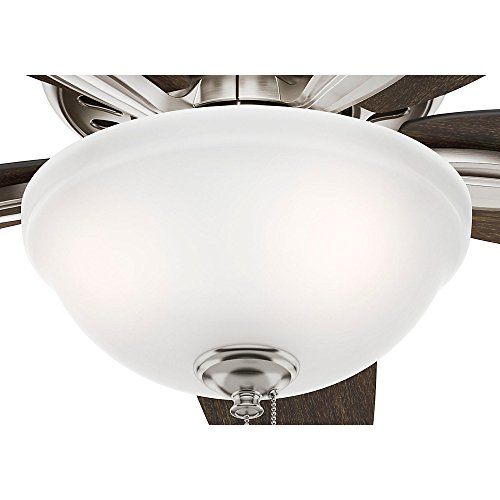 Through its casual style and charming appearance, the new some will compliment your decor without overpowering it. Clean line details work together throughout the fan body, blade irons and bowl light kit to create a coherent design with wide appeal. The 42-inch blades and low-profile motor housing make this fan a perfect fit for Small rooms or low ceilings. And remember, with the new some collection you have the freedom to choose from many different sizes, light kits and other options to maintain a consistent look throughout every room in your home.Feature