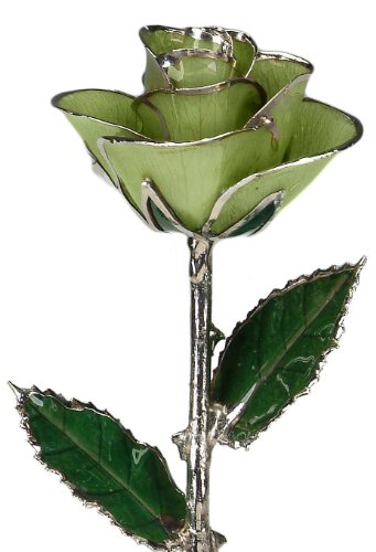 Light Green Laquered Platinum Dipped Long Stem Genuine Rose In Red Gift Box
