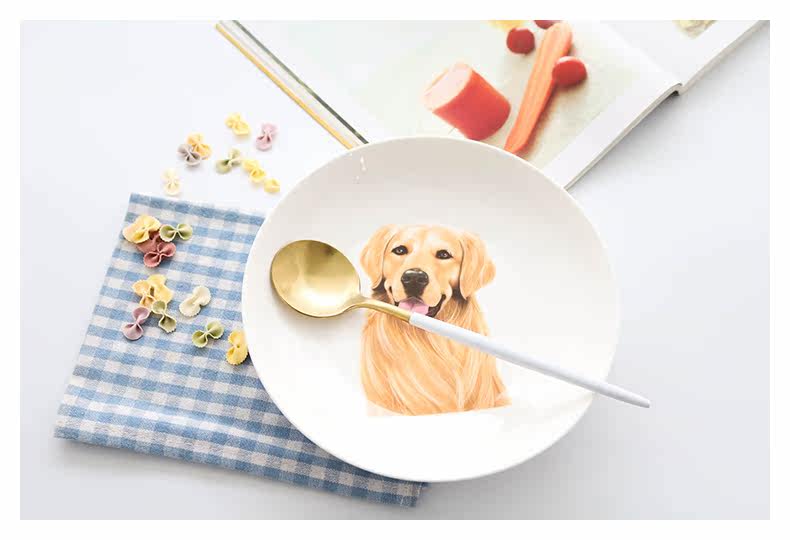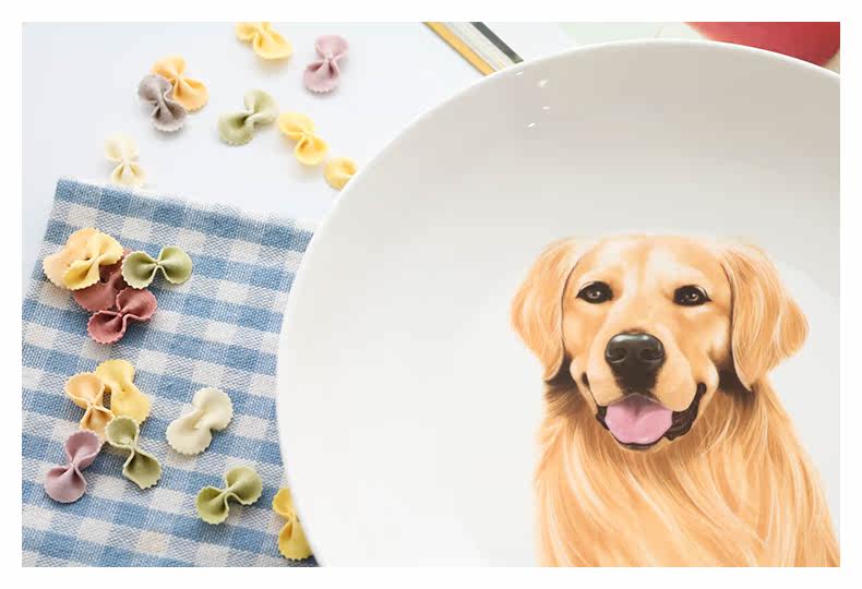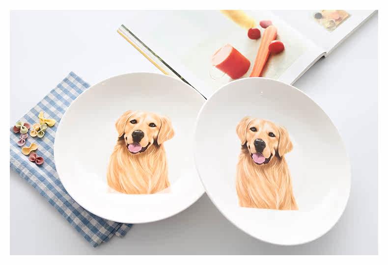 创意金毛系列盘子陶瓷菜盘创意家用餐具简约菜碟圆形碟子早餐盘子