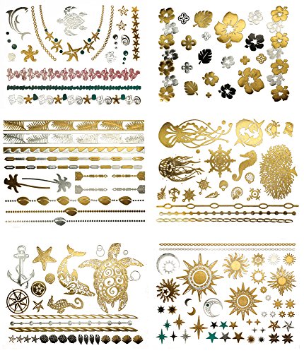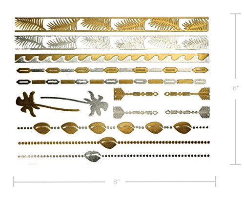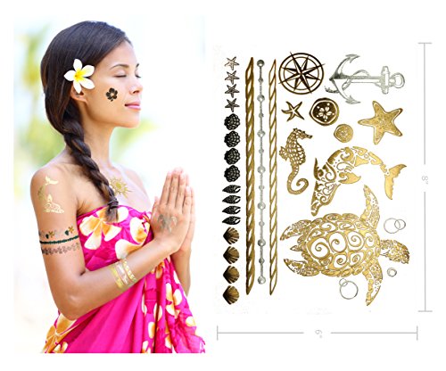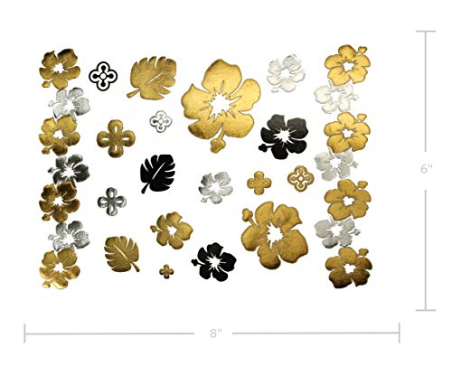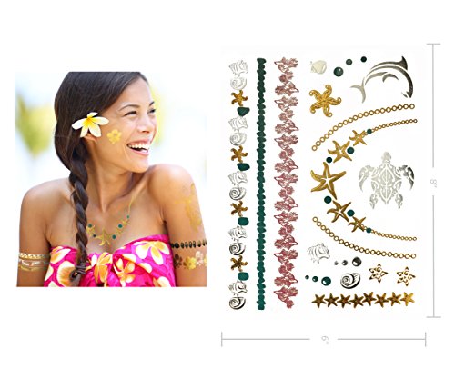 Terra Tattoos Metallic Tattoos - Over 75 Tropical Hawaiian Inspired Temporary Tattoos in Gold and Silver (6 Sheets), Aja Collection
