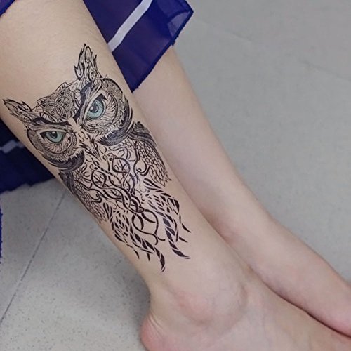 Yeeech Temporary Tattoos Sticker Animal Owl Design Blue Eyes
