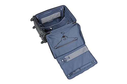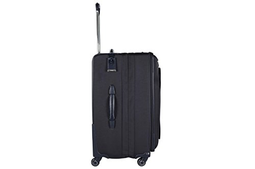 -. Feature : Resilient HTLS Polyester fabric • Smooth calfskin trim and striking chrome accents • Four front zip pockets • Top and side leather carry handles • Add-a-Bag strap • Aluminum telescoping handle • Four wheels that swivel 360 degrees for added mobility • Removable lock • Suit compartment with hanger clip • Interior zip and mesh pockets • Tie-down straps