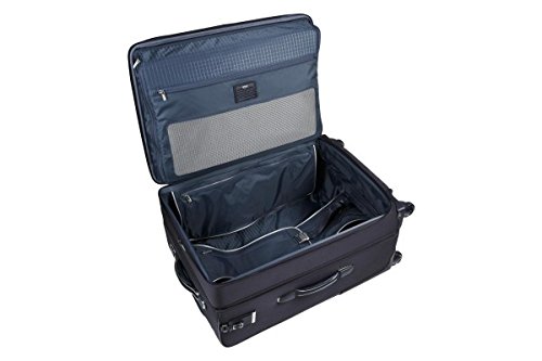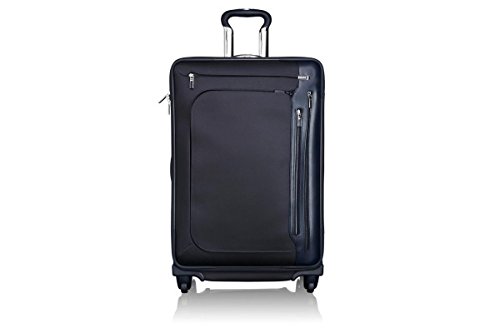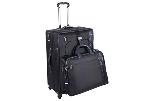 Arrive, the French word meaning both "to arrive" and denoting success ("has made it"), is designed to meet the demands of the sophisticated business professional. Tumi Arrive (pronounced Ah-ree-vay) is meticulously appointed with the finest aesthetic and engineering features. Signature details include calfskin trim, resilient HTLS Polyester fabric, striking chrome accents, custom-made handles, and intelligent interior organization. Sleek, polished and conveying an understated elegance, this collection is offered in a range of travel cases. This larger packing case has the easy maneuverability of a four-wheel design and flexibility with a main compartment that expands 2.5". Features include numerous interior pockets for smaller items and a suit compartment.