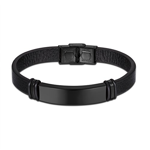 -. Title : Rockyu 人気 ブレスレット メンズ レザー ステンレス ブラック 黒処理 アクセサリー 本革 腕輪