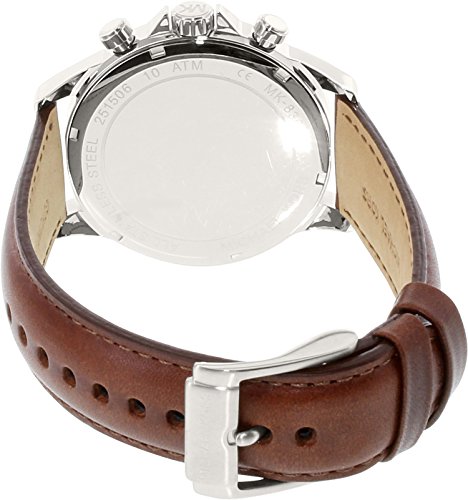 Studio : Michael Kors Publisher : Michael Kors Binding : Watch Product Description Stainless steel case with a brown leather strap. Fixed stainless steel bezel. Blue dial with silver-tone hands and Arabic numeral minute markers (at 5 minute intervals). Minute markers around the outer rim. Dial Type: Analog. Luminescent hands and markers. Date display between 4 and 5 o'clock positions. Chronograph - three sub-dials displaying: 60 second, 30 minute and 24 hour. Quartz movement. Scratch resistant mineral crystal. Solid case back. Case diameter: 45 mm. Case thickness: 13 mm. Round case shape. Band width: 24 mm. Tang clasp. Water resistant at 100 meters / 330 feet. Casual watch design. Michael Kors Gage Chronograph Blue Dial Brown Leather Mens Watch MK8362. 0