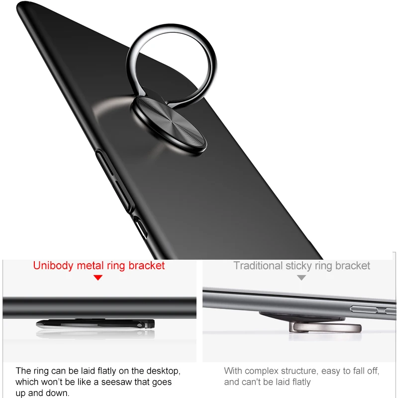 Features:Luxury Ultra Thin Smooth Hard PC Plastic Ring Holder Kickstand Case