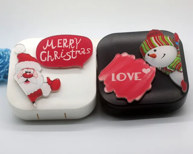 | [해외] LIUSVENTINA DIY 아크릴 메리 크리스마스 산타 클로스 눈사람 사랑 콘택트 렌즈 케이스 눈 콘택트 렌즈 상자 안경 |