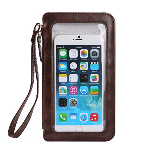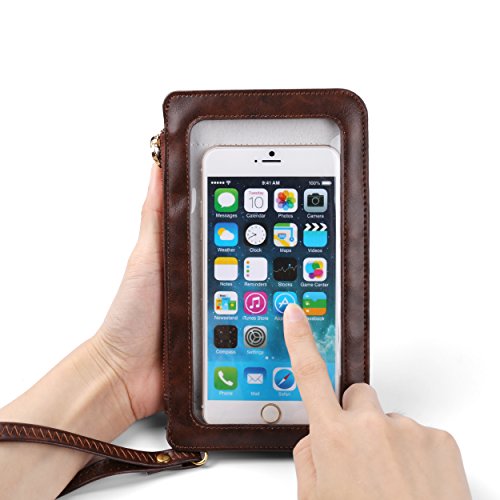 - The transparent window is accessible to use your smart phone even in the pouch, allows text, email, take selfies and answer the phone without take out your phone | 3 layer interior compartments, can hold your phone, credit card, ID card, keys, cosmetic, cash, other small necessities