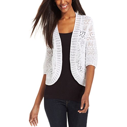 -. Title : Jm Collection Crochet Cropped Cardigan White Large