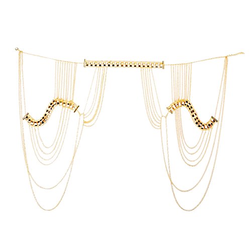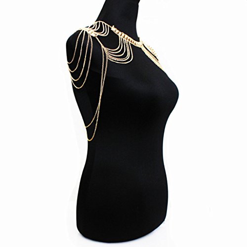 Description: Sexy adjustable necklace chain, two-shoulders body link chain Easy to wear, and no requirement of the waist size, and do not need pass the arm through the tassels chain Special design and unique structure, a popular item you worth to get it Makes you more attractive and sexy while you enjoy the party or wedding Stylish,popular and beautiful golden shoulder necklace chain