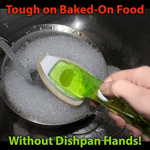 Studio : Scotch Bright Dishwand Publisher : Scotch Bright Dishwand Product Description Get the dish scrubber with a soap dispenser that works harder- from the # 1 selling brand! This dish soap wand holds dishwashing liquid right in its handle so you don't have to stop constantly to pour more liquid out of the bottle. A handy dishwasher wand makes a great addition to a housewarming gift basket or a care package for college students! Why should I buy a dishwand scrubber instead of a cheaper scouring pad or scrub sponge?DITCH THE DISHPAN HANDS! Choose the dish sponge with a handle so you don't have to scald or chafe your hands while you're attacking that baked-on casserole gunk. Keep your dishes AND your hands spotless! Fillable dishwand = 2-in-1 time saver!No more bottle/sponge juggling with this fillable scrubber! The dish soap is in the handle of this kitchen dish wand so you can get the dishes done quickly! Will this dish soap wand handle only work with the Scotch Brite Greener Clean dishwand scrubber refills?CHOOSE YOUR SPONGE for the refill! These handles fit any Scotch Brite brand dishwand refills! Scotch Brite offers many different sponge heads to tailor to different uses! How large is this dishwand sponge? Will it fit in tight spaces?The wand with the sponge installed is 8.8" long, 3.5" tall, and 1.65" wide. The pad surface is 1.65" at its widest point and 3.5" long. The tapered end of the dishwand scrubber sponge is designed to reach corners and curves better than a square sponge! Are there any surfaces the non-scratch dish scrubber will scratch?We recommend not using it for aquariums or copper dishes. If you are concerned about a surface, test a small spot in an inconspicuous spot first. How do I keep my dish wand sponge from getting stinky?The dishwand sponge is safe to toss in the dishwasher for disinfection, and we recommend doing so for best results! It can also be cleaned by boiling in clean water or soaking in bleach. 0 |