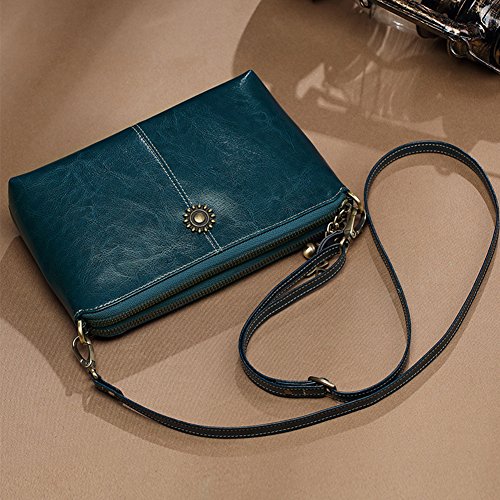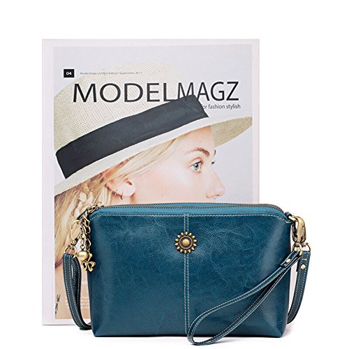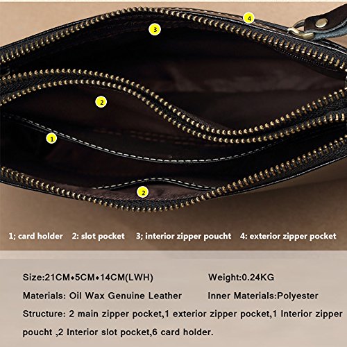 - MATERIAL: top oil wax cowhide leather.high quality silver hardware.black Interior polyester, elegant and vintage, don't show dirt.