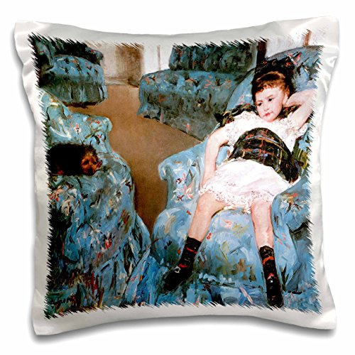 3dRose Little Girl in a Blue Armchair by Mary Cassatt American Art - Pillow Case, 16 by 16-inch (pc_126911_1)