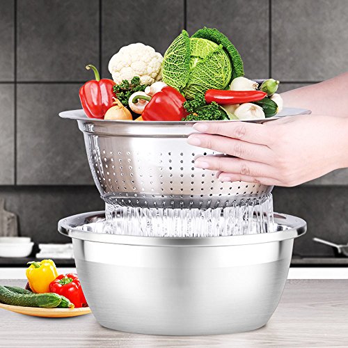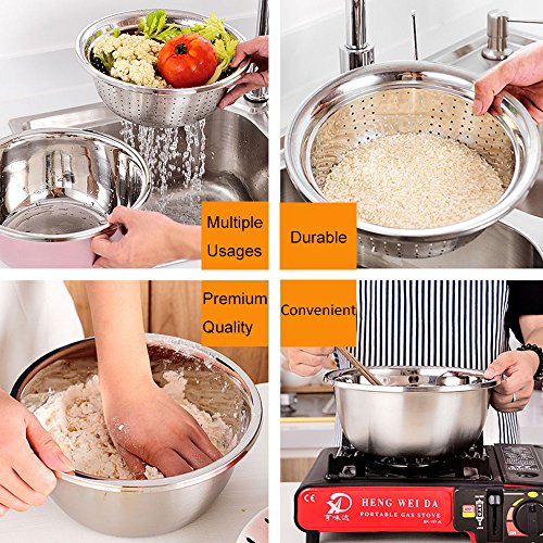 - ※High Quality&Safe: This Multifunction mixing bowls is made from high grade Stainless steel, Food-Grade material,good polishing, lead- free, healthy and quality assurance, easy to clean