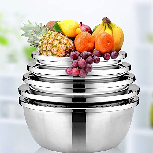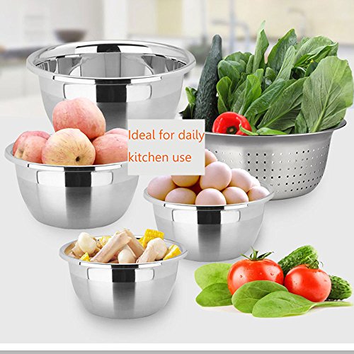 Stainless Steel Organizing Mixing Bowls Set, Shrimp Serving Bowls Containers Wash Colander Food Strainer Rice Sieve Salad bowls Perfect for Serving Cooking,Mixing and Baking - 5 Set