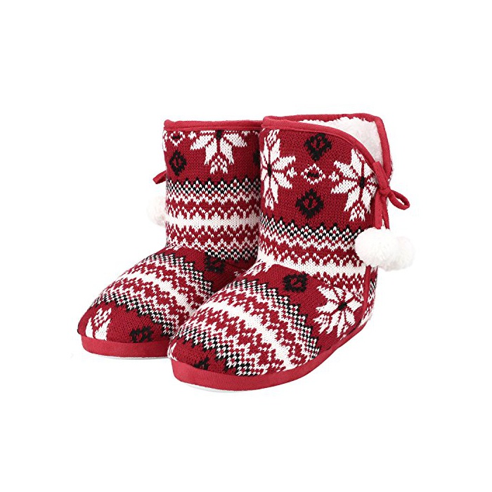 Sibba 룸 부츠 따스한 룸 슈즈 니트 보아 실내리 와 미끄럼방지 멋쟁이 (L 25-25.5cm,레드)