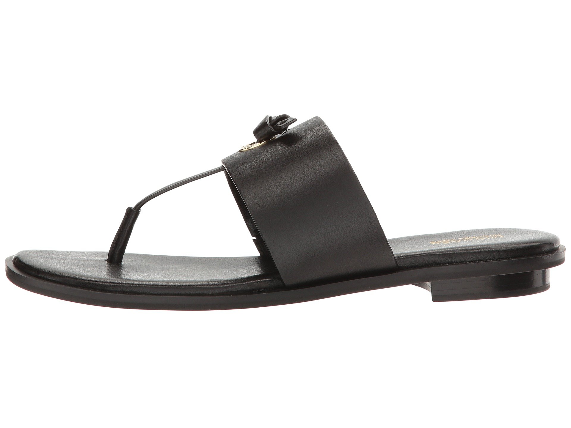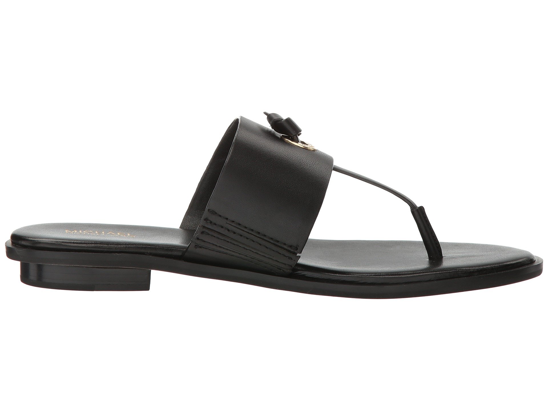 | Product Information SKU: #9026959Breeze into easy chic with the always stylish MICHAEL Michael Kors? Cindy Sandal.Leather upper.Slip-on design with thong construction.Rivet and knot detail at vamp.Leather footbed and sole.Low heel.Imported.Product measurements were taken using size 7, width M. Please note that measurements may vary by size.Weight of footwear is based on a single item, not a pair.Measurements: Heel Height: 1?2 in Weight: 6 oz |