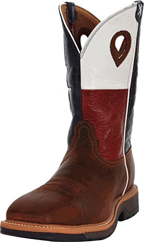 Studio : Twisted X Publisher : Twisted X Binding : Apparel Product Description Twisted X Boot Company proclaims, "We're making 'em right" When it comes to cowboy boots for real cowboys, Twisted X knows you want to pull on your boots comfortable and leave them on comfortable. The Twisted X pull-on work boot features a smooth leather foot under a 12" leather shaft with Texas flag design. Mesh fabric lining. 1 3/4" block heel. Double stitched welt. Easy-on pull holes and square steel toe. Imported. 0