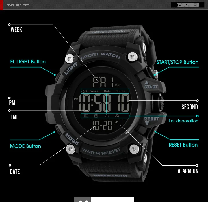 Feature:Water Resistant,LED display,Stop Watch,Back Light,Shock Resistant,Swim,Alarm,Chronograph