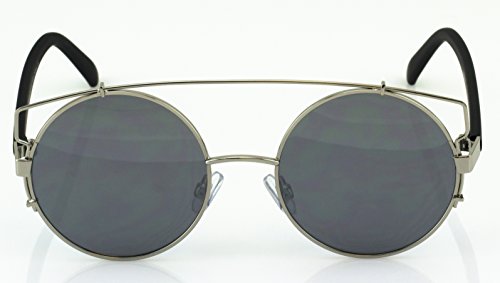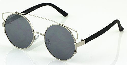 Elite Double Crossbar Colored Mirror Metal Flat top Round Lens Aviator Sunglasses