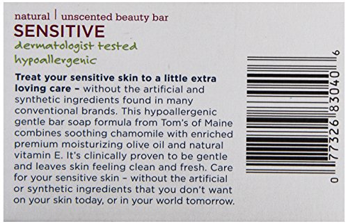 -. Binding : Health and Beauty -. Brand : Tom's of Maine -. EAN : 0077326830406 -. Feature : Tom's of Maine, Sensitive Body Bar, 4 oz -. IsAdultProduct : 0 -. Label : Tom's of Maine -. Manufacturer : Tom's of Maine -. Model : 7732683040 -. MPN : TS0292 -. NumberOfItems : 6 -. PackageQuantity : 1 -. PartNumber : TS0292 -. ProductGroup : Grocery -. ProductTypeName : BEAUTY -. Publisher : Tom's of Maine -. Size : 4 oz -. Studio : Tom's of Maine -. Title : Tom's of Maine, Sensitive Body Bar, 4 oz -. UPC : 885368146375