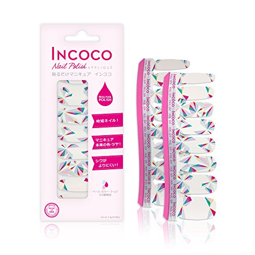-. Feature : アメリカ生まれの貼るだけマニキュア 「インココ・ネイル・ポリッシュ・アップリケ」(Incoco)はマニキュア成分でできたシートタイプのマニキュアです。 / 乾かす時間不要、塗りムラ知らず、且つマニキュアならではの発色やツヤを楽しめます。 / インココでまったく新しいマニキュア体験をしてみませんか! / 【数量限定】ホワイトデュオクロームベースに幾何学模様のデザインネイル。ファッション好きならやっぱり外せないホワイトカラーネイル。「カワイイ」から「デキル」へ返信☆