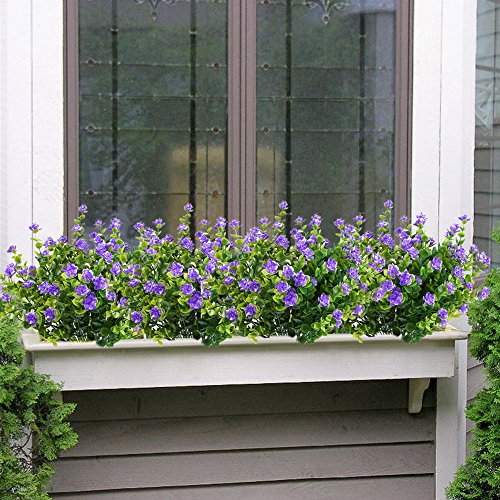 ◆【Family Leisure Time】: • Artificial Flower Excellent Material Let you experience the joy of relaxing in the ideal Home.★★★ {One square foot outdoor requires 3-4 PACK of flowers to fill } ★ All faux plant are handmade 100% SAFE with love and care by Nepalese or women in remote area , with each purchase you are contributing to their livelihood and better life. ◆【Perfect Decoration】:•These branches will light up any occasion---Add greenery to home. • It can be used as foundation plantings for many gardens , or even backdrops defining garden beds and adding interest to it. •Make your walkway, pathway, staircase standout by bordering our beautiful Dwarf purple shrubs,create an illusion of enlarged space ◆【Easy to Use】:•Artificial green plant outdoor which is constructed of plastic and fabric material.•This faux flowers will never die off and easy take care of,so that it can be a nice decoration for a long time . ◆【Package Content】: • Artificial Plastic Eucalyptus Leaves as picture show ☞ 4 Bunches ☜ 7 stems each bunch. [Pot NOT included] • Material: Harmless 100% SAFE ,ECO-Friendly Plastic,Fabric • Type: Faux Plant Length:15.3 inch Leaves • Color: Green bushes and purple flowers . ◆【Attentions】: •Because of packing,the fake flowers would be agminated when you get it . •Need to move them with yor hand,you can adjust each flower as your pleases.Feature