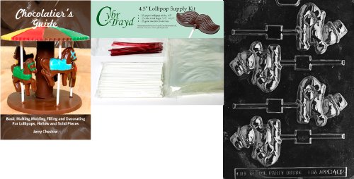 Cybrtrayd Snowman on Cane Lolly Chocolate Mold with Chocolatier's Bundle of 25 Lollipop Sticks, 25 Cello Bags, 25 Red Twist Ties and Chocolatier's Guide
