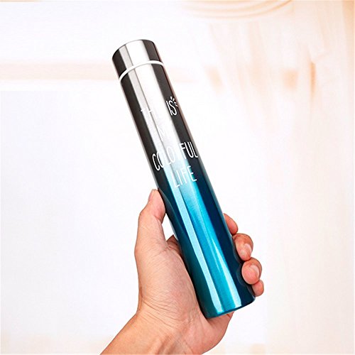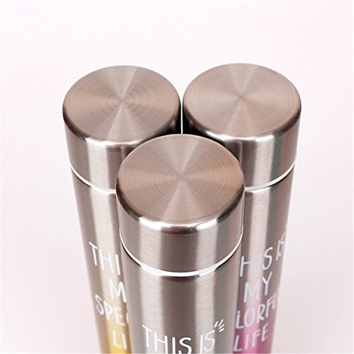 Using Instructions:1. Please handle bottle with care since it is vacumn bottle and is very sleek, .2. Please note that there is a rubber ring inside of the cap, which is the key to prevent leaking. Make sure the ring is inserted into the cap completely.3. Better to put bottle on desk when pouring very hot water instead of holding it with bare hands to avoid unexpected hurt.4. Please do not throw ice cubes into bottle directly with force from the very top to avoid smashing.5. Pour water from the bottle top, screw the top cap completely to avoid leaking.6. Double wall vaccum flask keeps your drink hot for 12 hours or cold for 24 hours. Slim design fits easily into your purse or briefcase for when you're on the go.