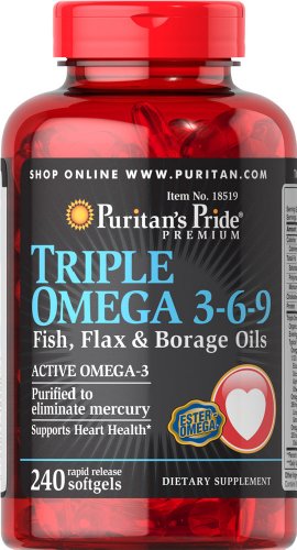 Omega 3-6-9 is an all-inclusive formula is reinforced with 3 different types of omega fatty acids Omega-3, Omega-6 and Omega-9 the good fats important for heart and metabolic health. Fatty acids, particularly Omega-3s, may help support joint and skin health. In addition to all these good fats, Triple Omega 3-6-9 contains a proprietary blend of essential oils, including Flaxseed Oil, Fish Oil, Evening Primrose Oil and Borage Oil, and is a good source of Vitamin E. Omega 3-6-9 is one of the best ways to support cardiovascular function.