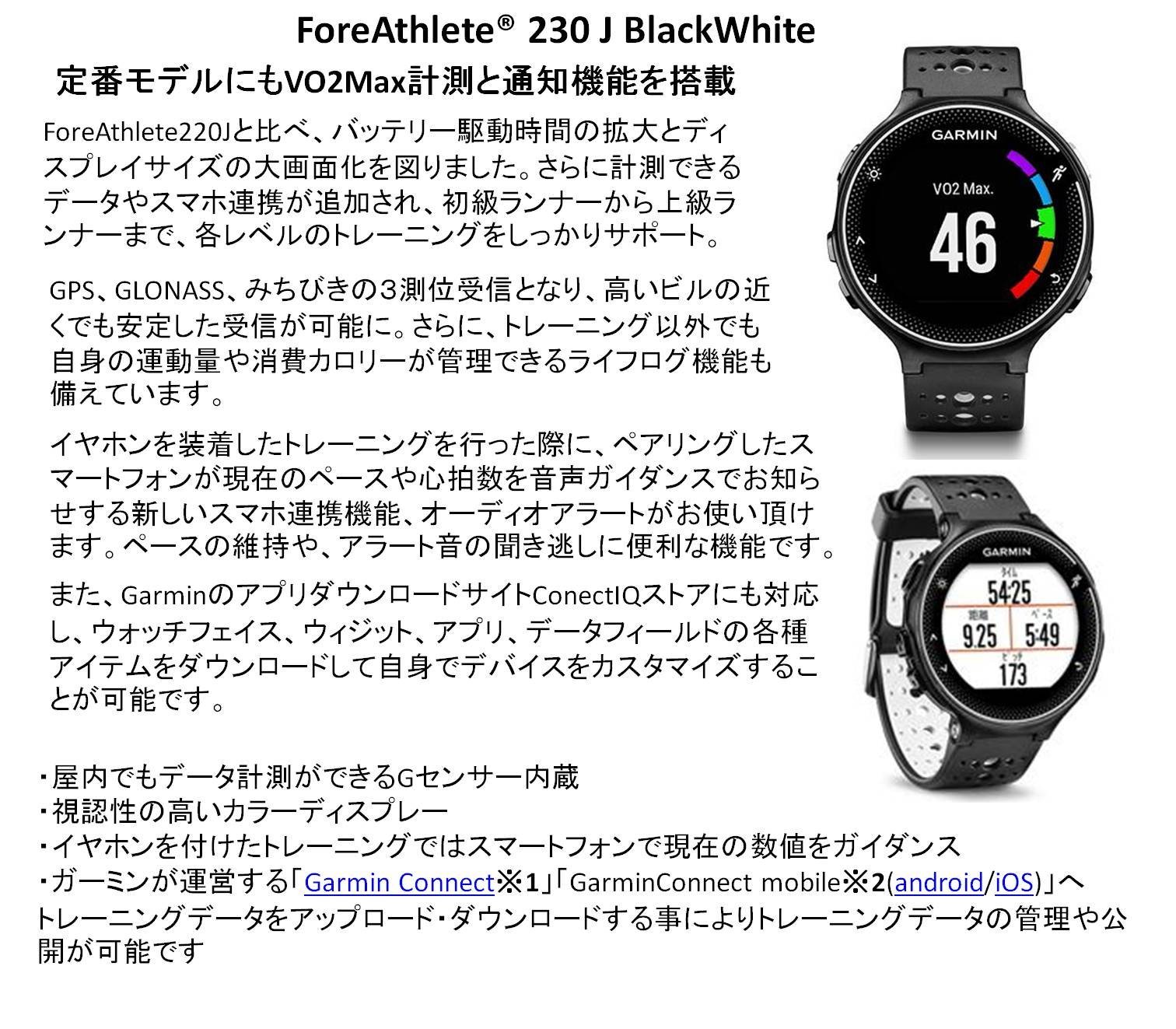 Connection function: automatic upload to Garmin Connect, Live Track 4, audio alert, music control, notification function and SNS sharing