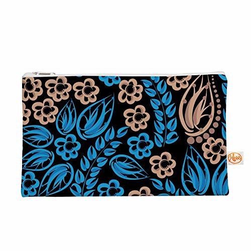 KESS InHouse Maria Bazarova "Blue Flowers" Black Floral Everything Bag, 8.4" x 4" (MB6024AEP03)