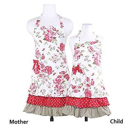 Mommy Daughter Matching Apron Set Cotton Floral Women Girl Kitchen Cooking Aprons with Pocket Set of 2