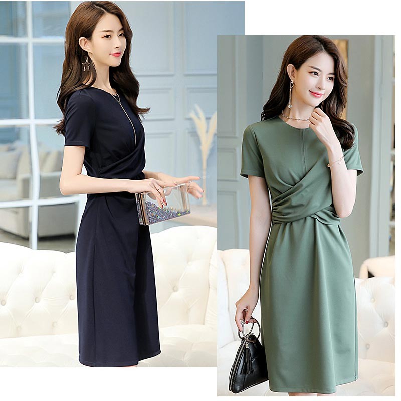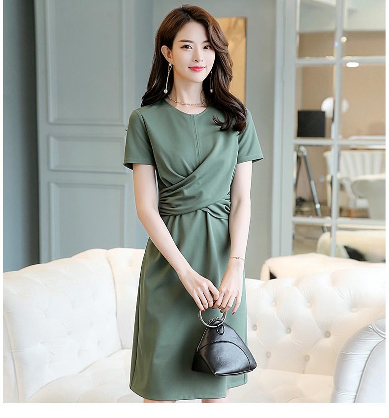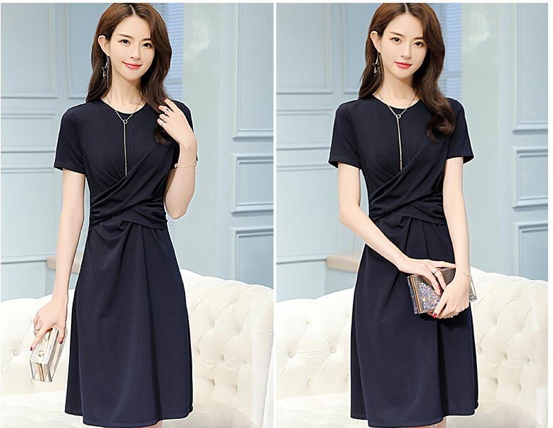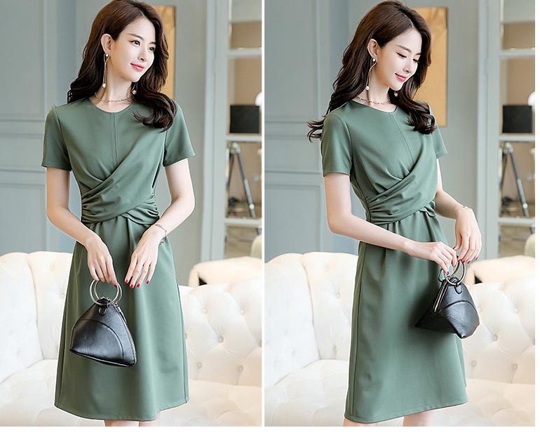 胸下からウエストにかけてクロスしたデザインの半袖・ひざ丈ワンピース♪