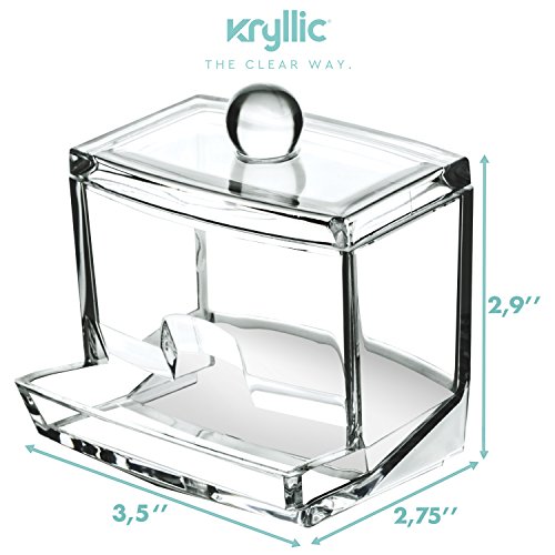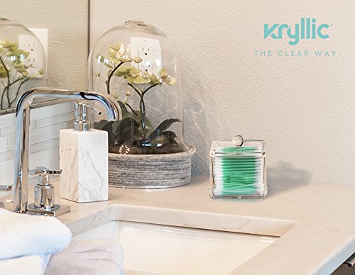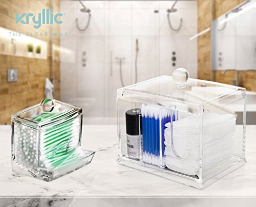 - KEEP IT NEAT! Store Q-Tips, cotton swabs, cotton balls, makeup pads, and other bathroom accessories in this clear container. This clear acrylic organizer allow you to eliminate clutter and save space. Easily store everything from lipsticks and eye shadows to office supplies or household knick knacks such as safety pins and nails. It won't clash with the decor of your home or office and makes a beautiful display.