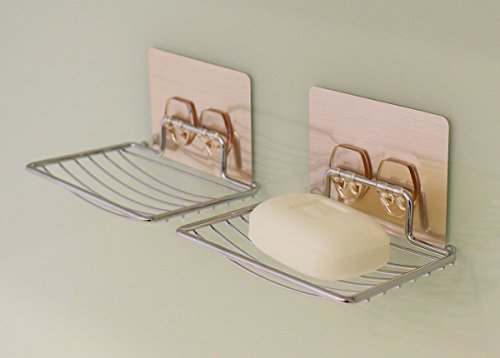 -. Feature : ****Warming, this Removable Wall Adhesive pad can only use on smooth, flat & non-porous surfaces such as tile, acrylic, stainless steel, glass, mirror and polished wood, etc. / ****Do not paste it on uneven, rough or porous surfaces such as mini-tile wall, cement wall, soil wall, white-washed wall, plaster wall, wallpaper, wall coverings, water-based coating surfaces, etc. Do not let this item come into contact with heat or open fire. If you intend to use on rough or uneven surface, this product is not suitable for you. / Adhesive-mounted soap dish with metal wire design to allow for instant drainage; less cleaning needed. Comes in set of 2. No drilling/hammer needed - just peel & stick. Strong suction adhesive for easy, instant installation. / Reusable, removable, waterproof & leaves no residue when removed. Wash with water to reuse. Chrome finish for metal wire; brushed metal look for adhesive portion / Recommended load: 4.4lb. Lab-tested to be able to carry 26lb while mounted on clean glass surface.