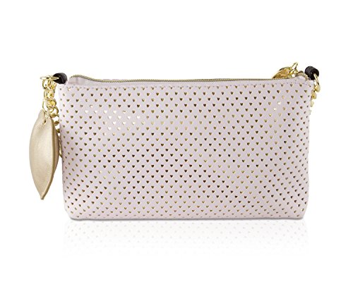 Heart perforated exterior, front logo plate on flap, multi colored