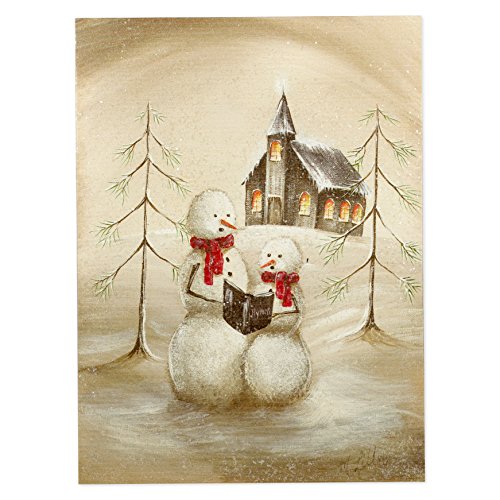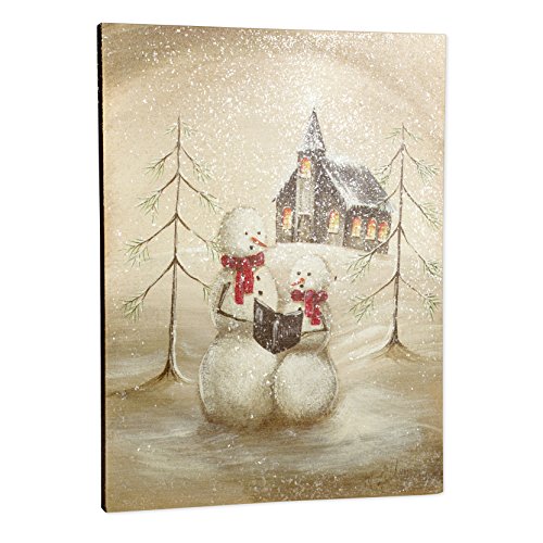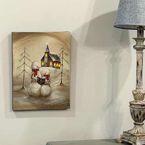 Sing Unto the Lord Snowman Carolers LED Light Up 12 x 16 Inch Canvas Wall Plaque