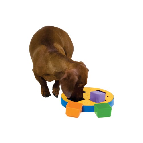 Studio : Kyjen Publisher : Kyjen Binding : Misc. Product Description Doggy Blocks rocks! This puzzle contains four square treat chambers, accessible by removing the cups covering each compartment. Once all four cups have been removed, your pup must learn to rotate the top section of the toy in order to expose more treats! Several scent holes trigger your dog's natural curiosity. Every dog's a winner with Outward Hound Games! Bring out the genius in your dog with our interactive, treat-seeking puzzles and exercise toys. Game on! 0
