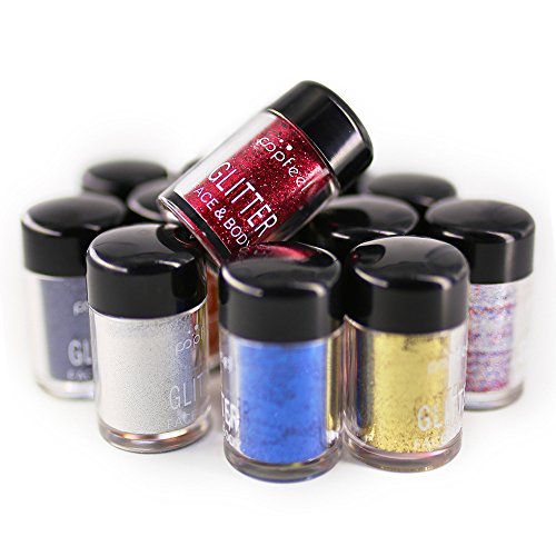 - GORGEOUS HOLOGRAPHIC GLITTER PIGMENTS: Fine-grained, cosmetic-grade glitter for eyeshadow and more, for both exotic or subtle looks. Each color contains holographic color effects for a truly unique look, which great to use on the face, eyes, body, lips, hair, and nails