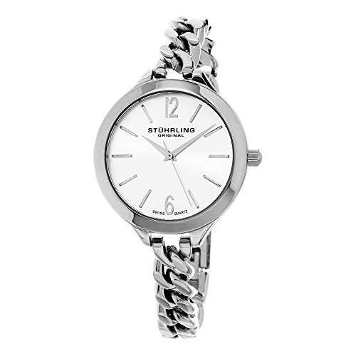 Stainless steel bracelet watch with tonal dial featuring baton and Arabic hour markers