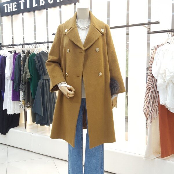 세련된 무드가 느껴지는 더블버튼 장식의코트입니다.울혼방소재로 사용하여 고급스러운 터치감과착용감을 줍니다.경쾌한 직선 실루엣이 캐주얼하게 착용하기 좋으며 퍼장식을 활용하여 더욱 감각적인 제품입니다.