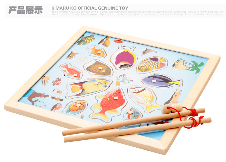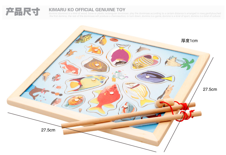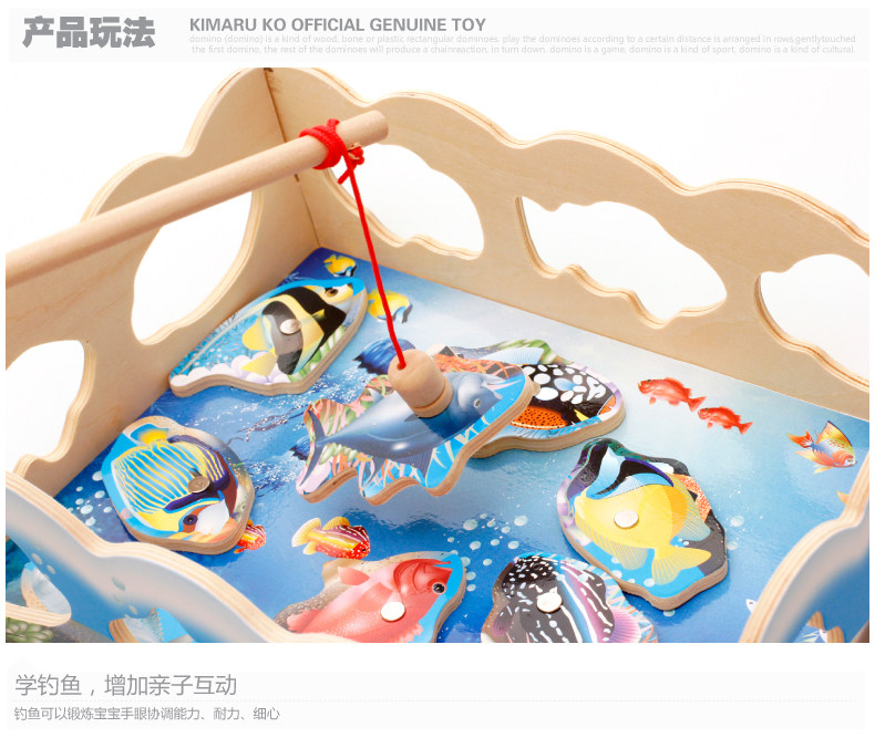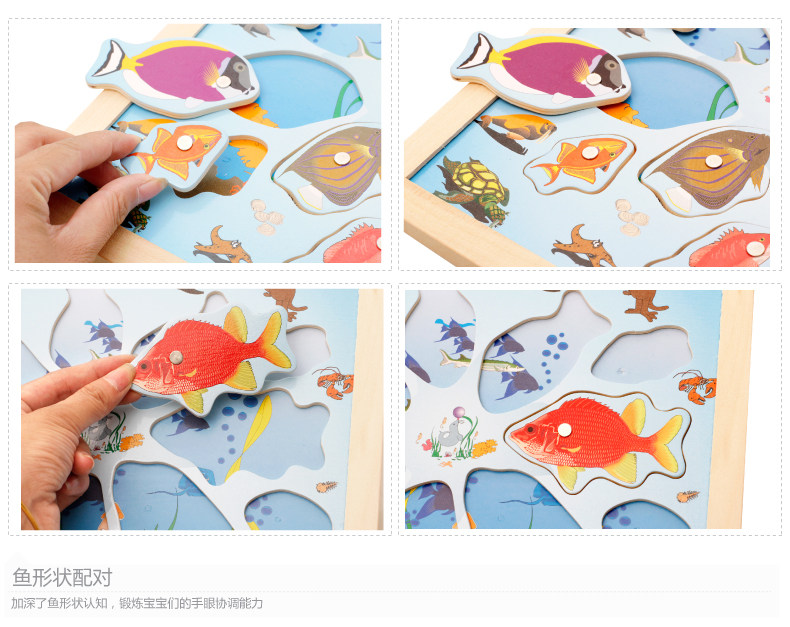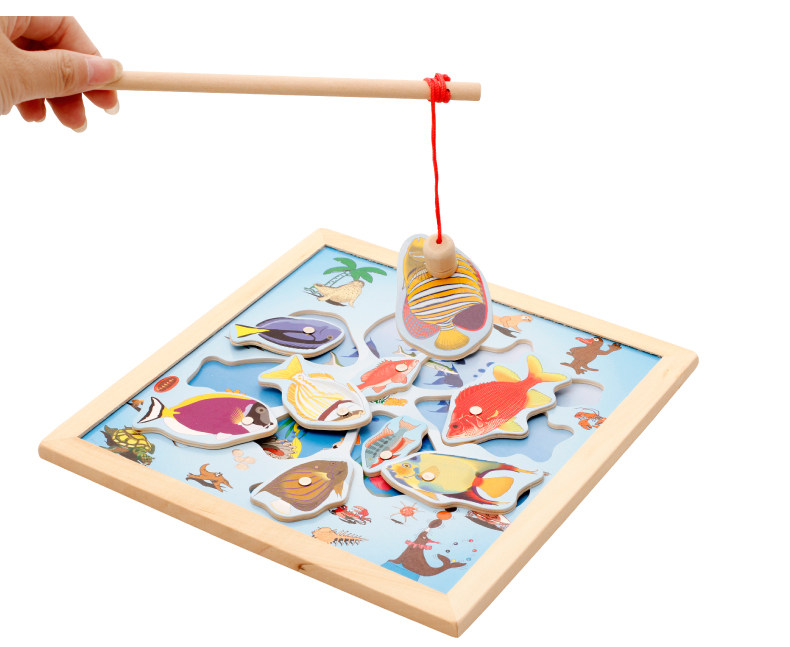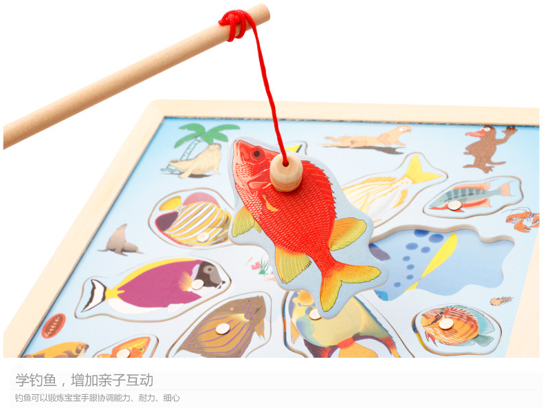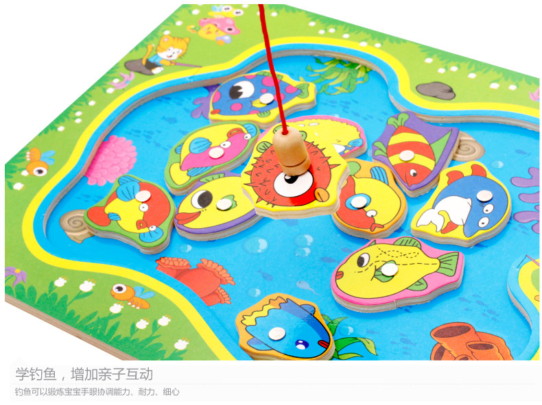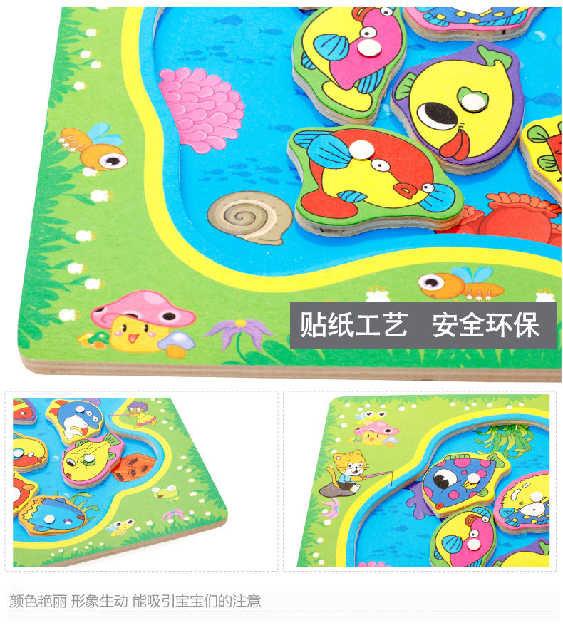 儿童磁性钓鱼玩具 木制小猫钓鱼竿拼图板宝宝早教益智游戏