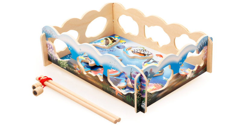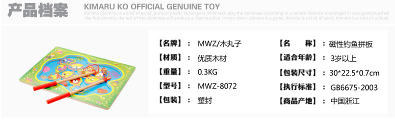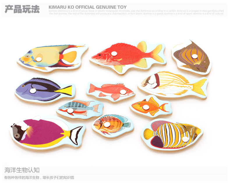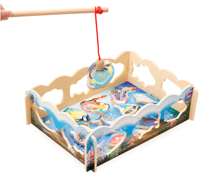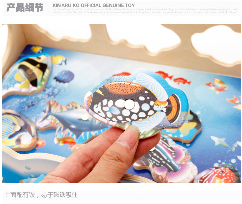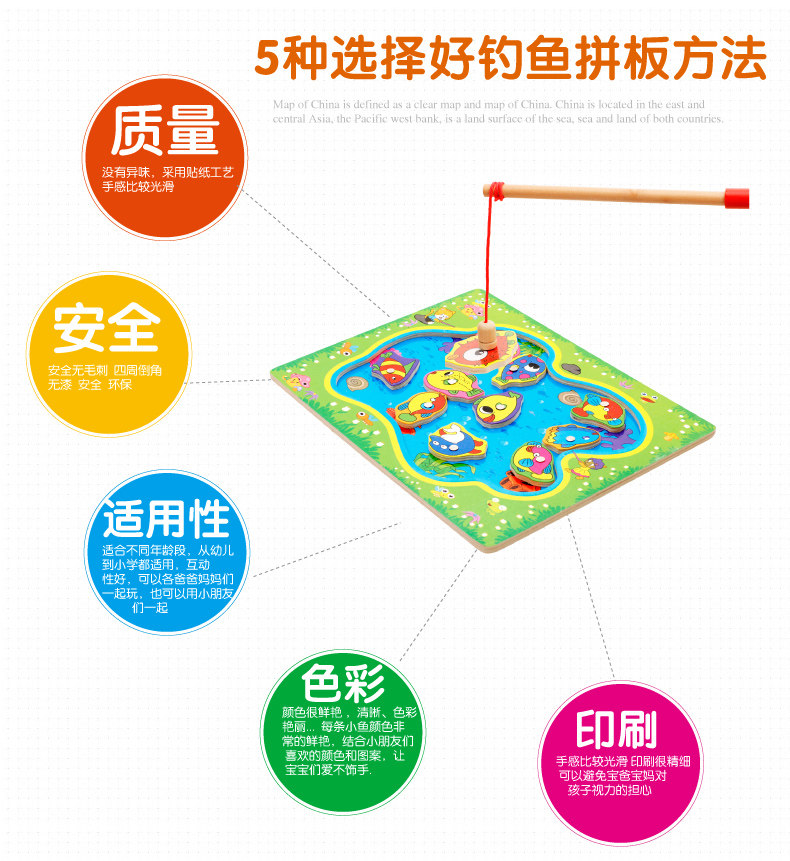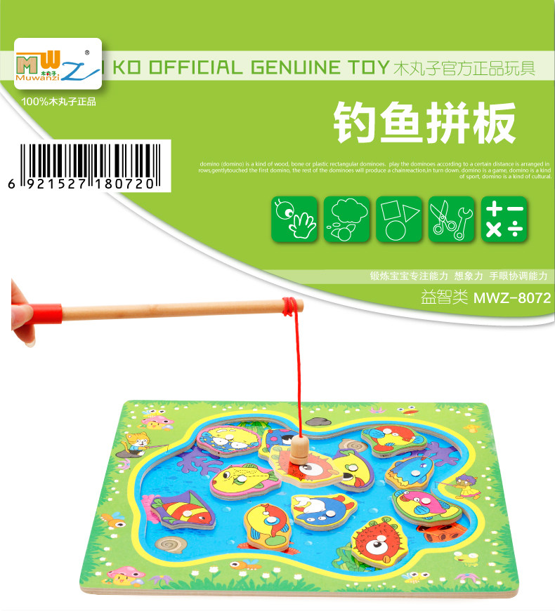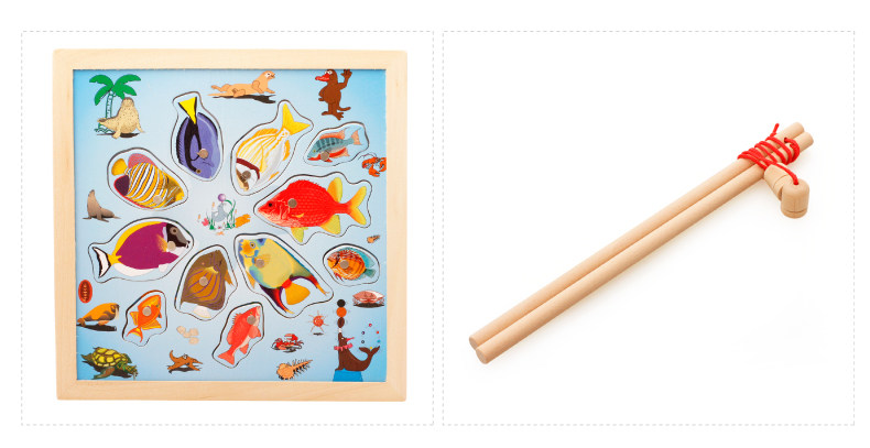 儿童磁性钓鱼玩具 木制小猫钓鱼竿拼图板宝宝早教益智游戏
